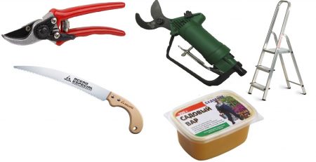 บ่อยครั้งในบรรดานักทำสวนที่มีประสบการณ์คุณสามารถค้นหาคำแนะนำในการใช้เลื่อยเลือยตัดโลหะที่คมเมื่อทำงานกับกิ่งแห้งแห้งและกิ่งก้านของต้นแอปเปิล ตัวเครื่องมือเองสามารถถูกแทนที่ด้วย secateurs พิเศษหรือเลื่อยในการตัดกิ่งที่ยากที่จะได้รับสามารถใช้ delimber พิเศษหรือมีดทำสวนได้